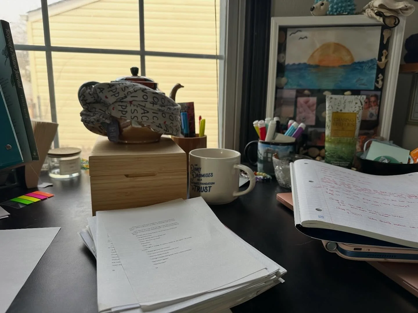 Most days, ok, all days, I’m entirely fueled by iced coffee and creativity. I was married for fourteen years, had four children, all with their beautiful rainbows of diversity, neurodivergence, special needs, and quirks – they make up the biggest piece of my heart. I was divorced (and really happy about it) in 2020, found the actual love of my life, and remarried in 2025. I wish all my years were filled with playing with my kids, drinking coffee, hanging out at bookstores, and writing books. But they’ve been filled with a lot of hospital stays, therapeutic therapies, IEP meetings, cancer treatments, and crying. I’ve struggled with my mental health for as long as I can remember. I’m not giving up, though. I’m sticking around, and I’m not going to stop creating.