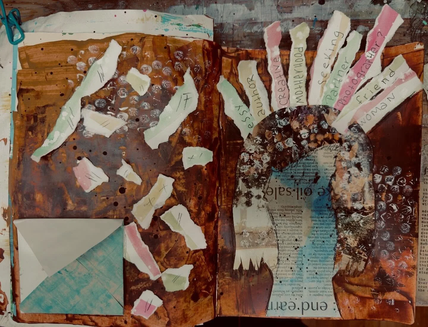 I’ve been writing for as long as I can remember, since before I knew how to form letters or string words into sentences. I’d take scraps of paper, scribble on them, and then read the stories to my mom. I remember spending entire afternoons in my bedroom writing short stories into journals or later into my computer. I’ve always wondered about the spiritual and what was beyond what I could see. I love being outdoors on a hike, sitting by water, or swinging on a swing. In 2017, I took my mom to an art journaling class as a Mother’s Day present. I had met the teacher at my church and thought it was up our alley. I had no idea how that class would change the trajectory of my life. We loved the class so much that we became regulars over the next four years. Art journaling helped heal things in me I couldn’t name with words. While I had always loved doing art, those classes gave me a new set of skills that I use in all my art today. I love creating pieces to hang on the walls in our home and in my art journal. In 2020, I began creating journals that I sell in my shop, Clementine Creations.